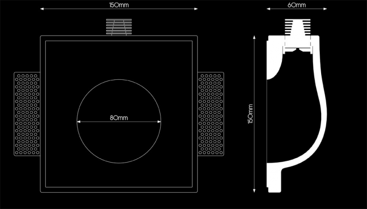 שקוע קיר מגבס, trimless , עגול קוטר 8 ס"מ