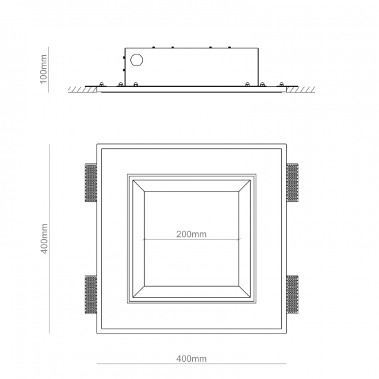 שקוע גבס, trimless, מרובע שוליים 20 ס"מ